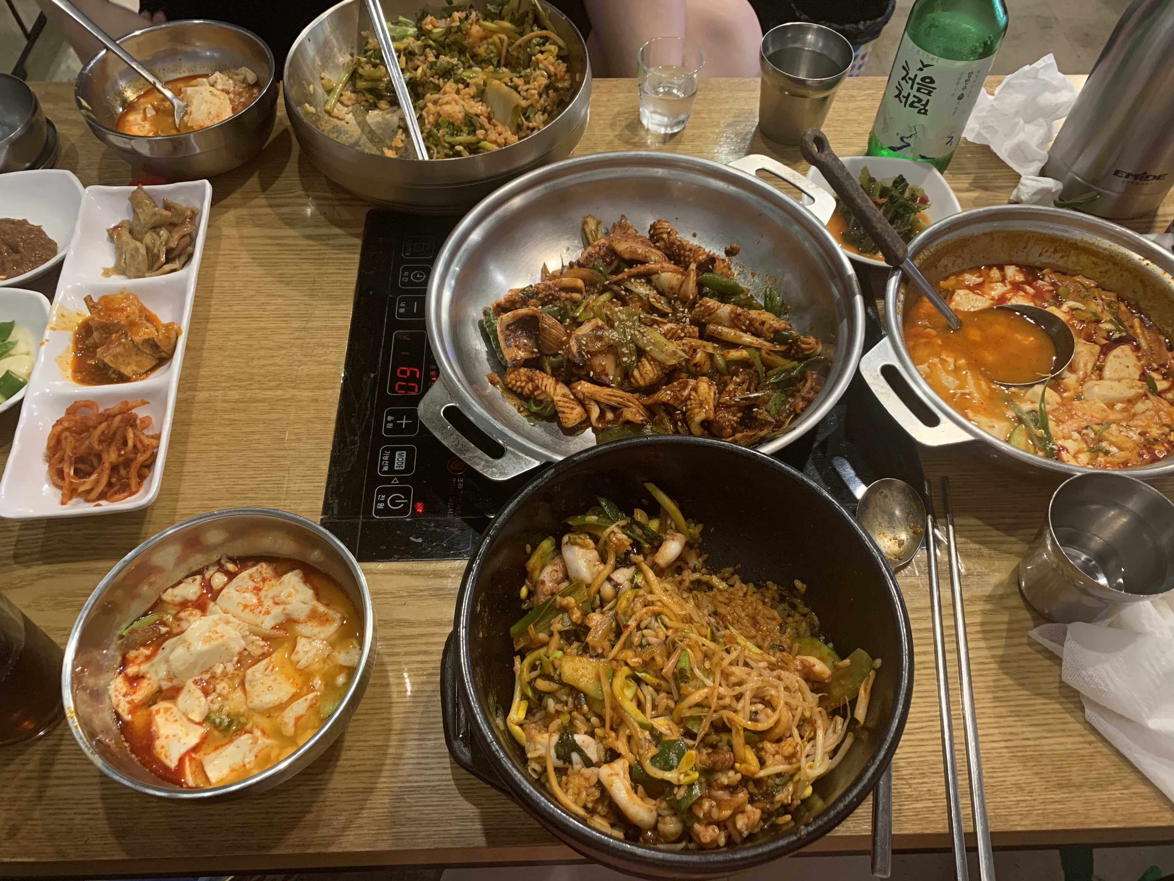 메뉴는 열무비빔밥+된장찌개, 오징어불고기, 돌솥낙지비빔밥을 시켰고 오징어불고기는 맵기조절이 되고 순두부는 기본으로 나왔던 것 같습니다.